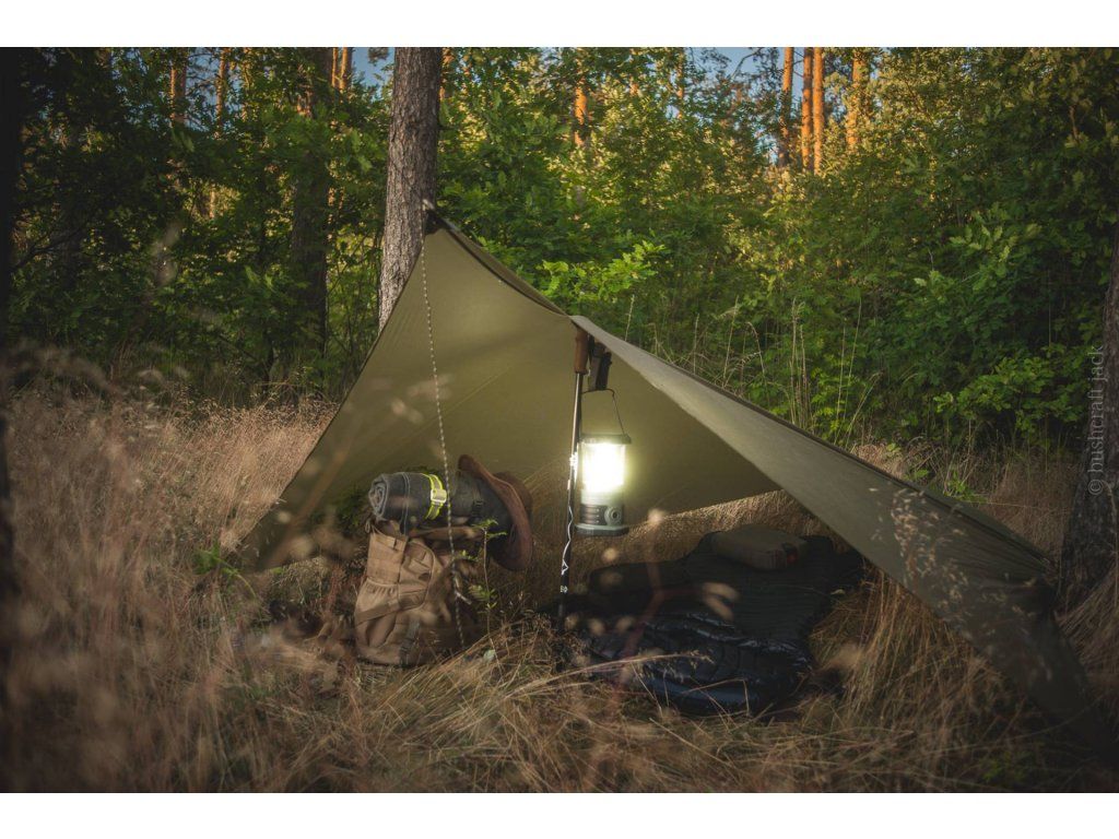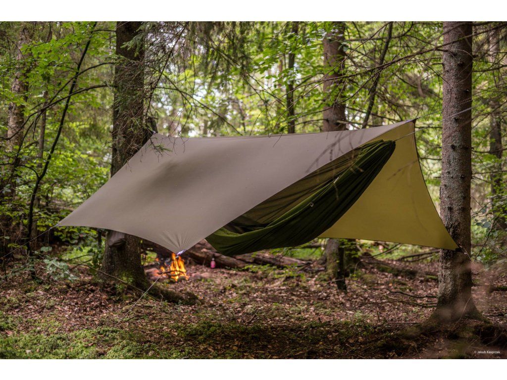 Hřbet tarpu o délce 360 cm je dostatečně dlouhý na to, aby bezpečně zakryl i ty nejdelší hamaky (včetně modelu DRAKA) a ponechal prostor pro suchou "předsíňku", kde si můžete v dešti uvařit kávu nebo přezout boty. Materiál tvoří prémiový Ripstop nylon s vodním sloupcem 6000 mm, což je hodnota, která vás udrží v suchu i během silné bouřky.